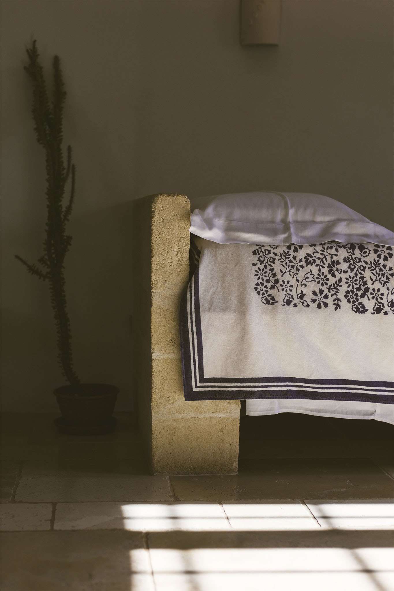 Our Lamia is conceived as the ideal space for a family: two comfortable communicating rooms and a bathroom, each room has its independent entrance with direct access to the garden, the pool and the olive grape. The first room is wide and bright with a queen size bed. The baby blue motifs with the talc nuance of the walls and the stone floor evoke an elegant and harmonious atmosphere. The second room is provided with two single beds: conceived for kids and teen agers, it is decorated with floral violet motifs which give the room a fairy atmosphere. The double room has access to the bathroom, provided with a large stonework shower.