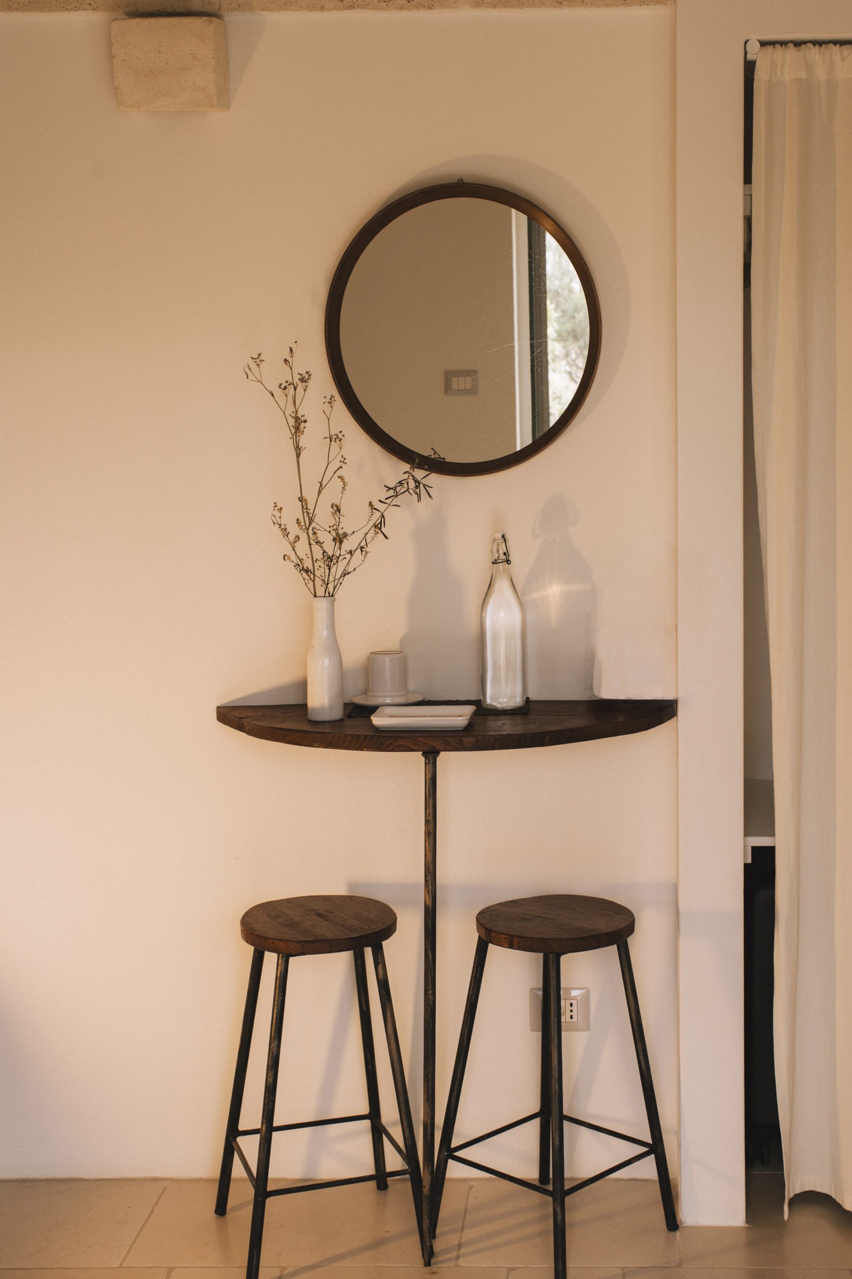 Lamia D a été conçu pour être l’environnement le plus intime et indépendant. Il comprend une chambre confortable avec un lit queen size, une armoire / placard et une salle de bain privée avec des fenêtres et une douche confortable. À l’intérieur se trouve une console en bois avec des sièges, conçue pour profiter au maximum du service du petit-déjeuner dans la chambre. Pour cet environnement, nous avons choisi la couleur « orange » et les motifs floraux, voulant rendre hommage au printemps et au soleil chaud qui distingue la période printanière et ses couchers de soleil.