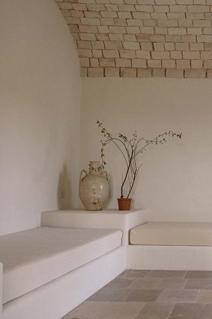 Immersa tra gli ulivi secolari della Valle d’Itria, Casa Regina si adagia dolcemente sulla pietra viva della Puglia.