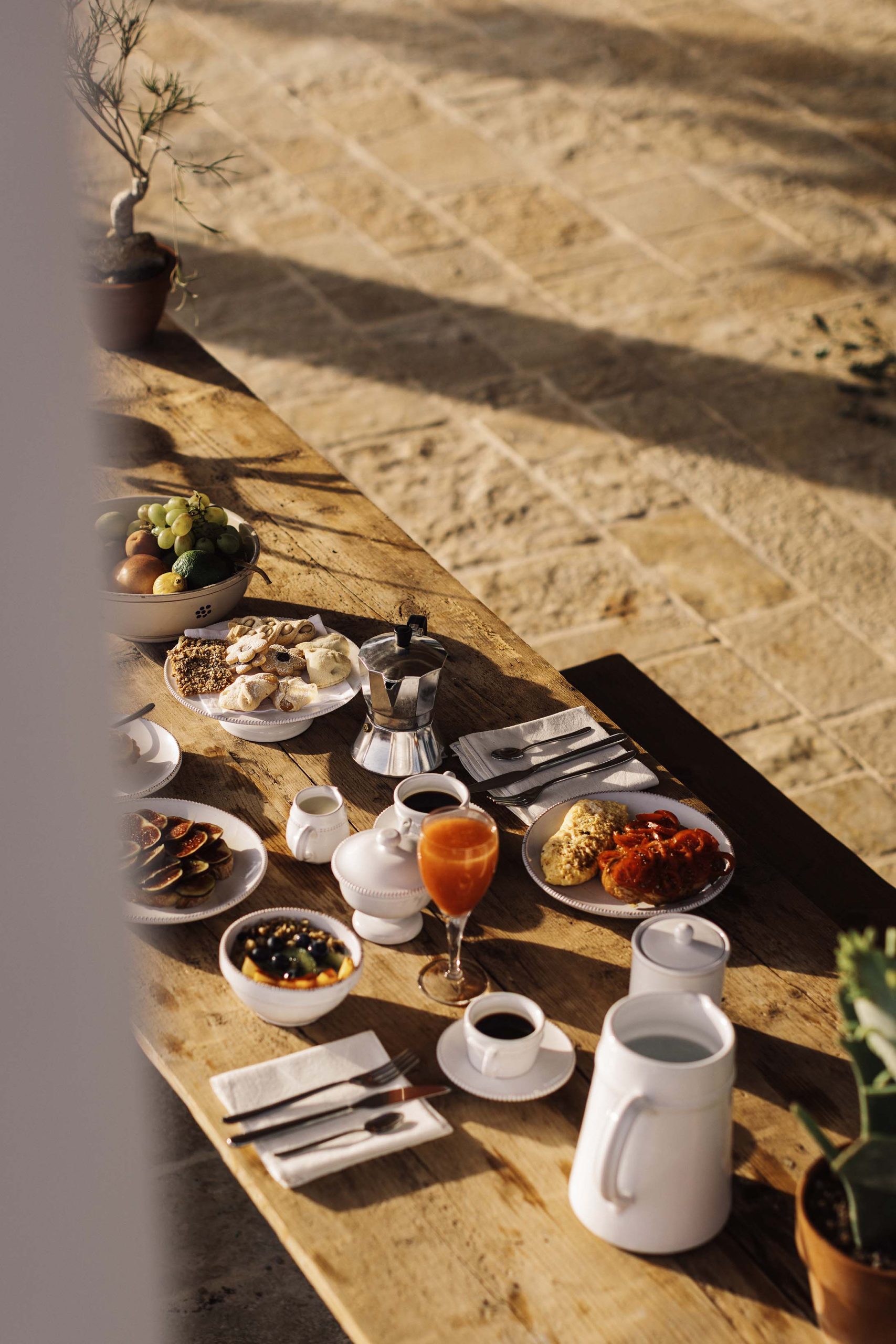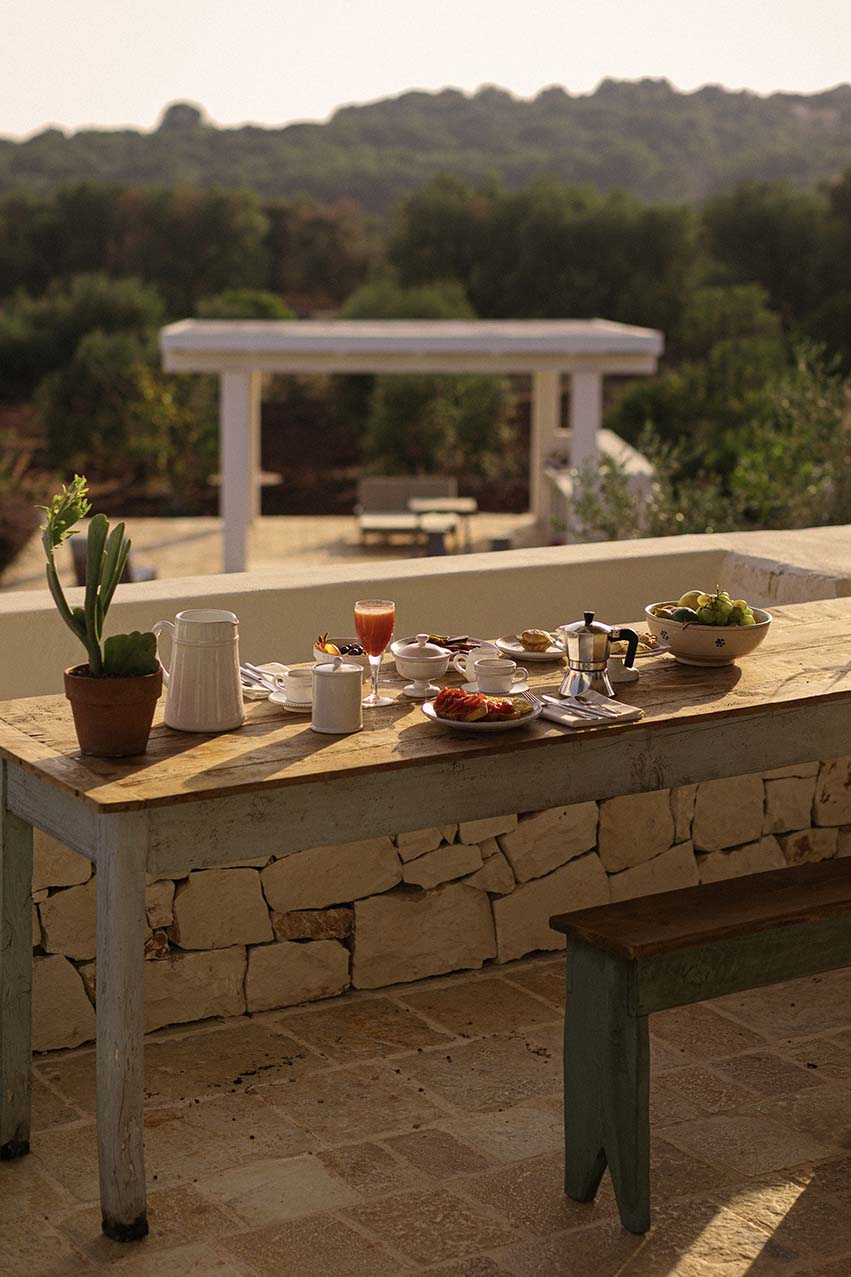 Immersa tra gli ulivi secolari della Valle d’Itria, Casa Regina si adagia dolcemente sulla pietra viva della Puglia.