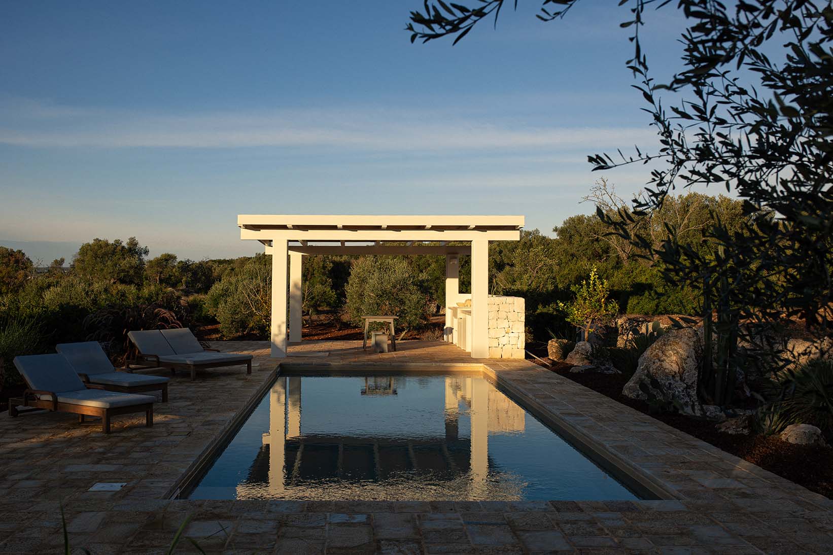 È un luogo di quiete e luce, dove natura e architettura si fondono in armonia, invitando a rallentare e a ritrovare sé stessi nella bellezza essenziale del territorio.