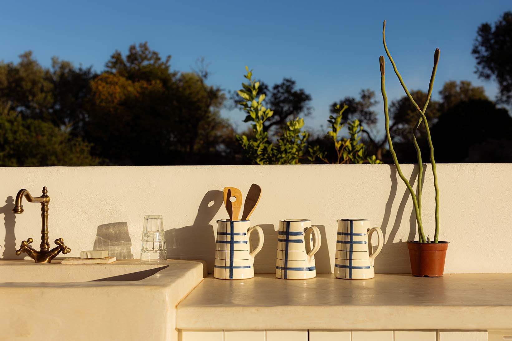 Tra gli ulivi e la pietra viva, una villa bianca respira luce e silenzio.