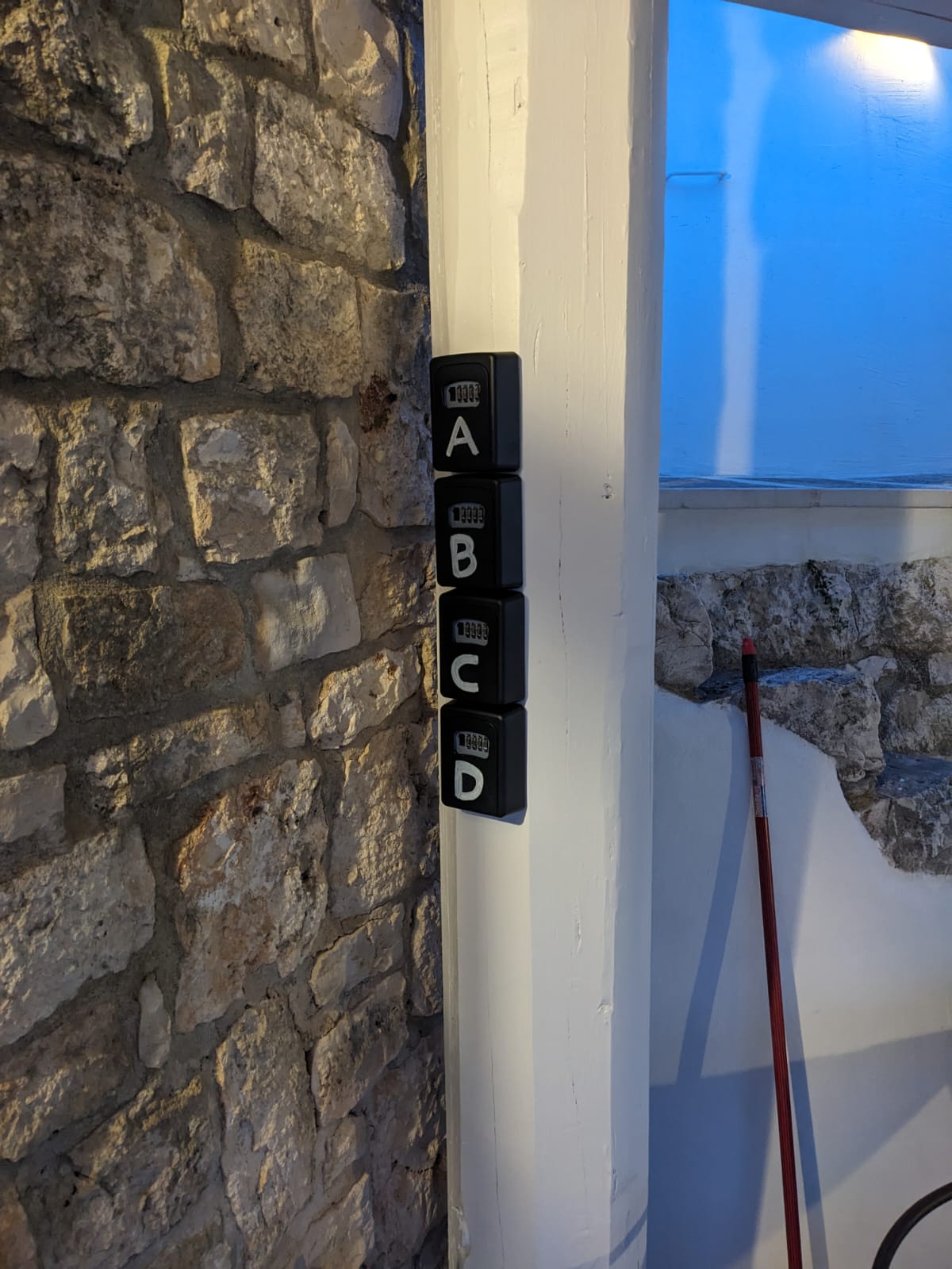 Avrete 3 chiavi, la gialla per la cucina e la living room, sotto la veranda centrale. Mentre le altre due chiavi sono per la porta esterna e interna della camera